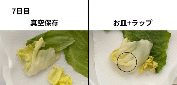 真空保存はレタスの乾燥と酸化を防ぐ効果があると考えられます。